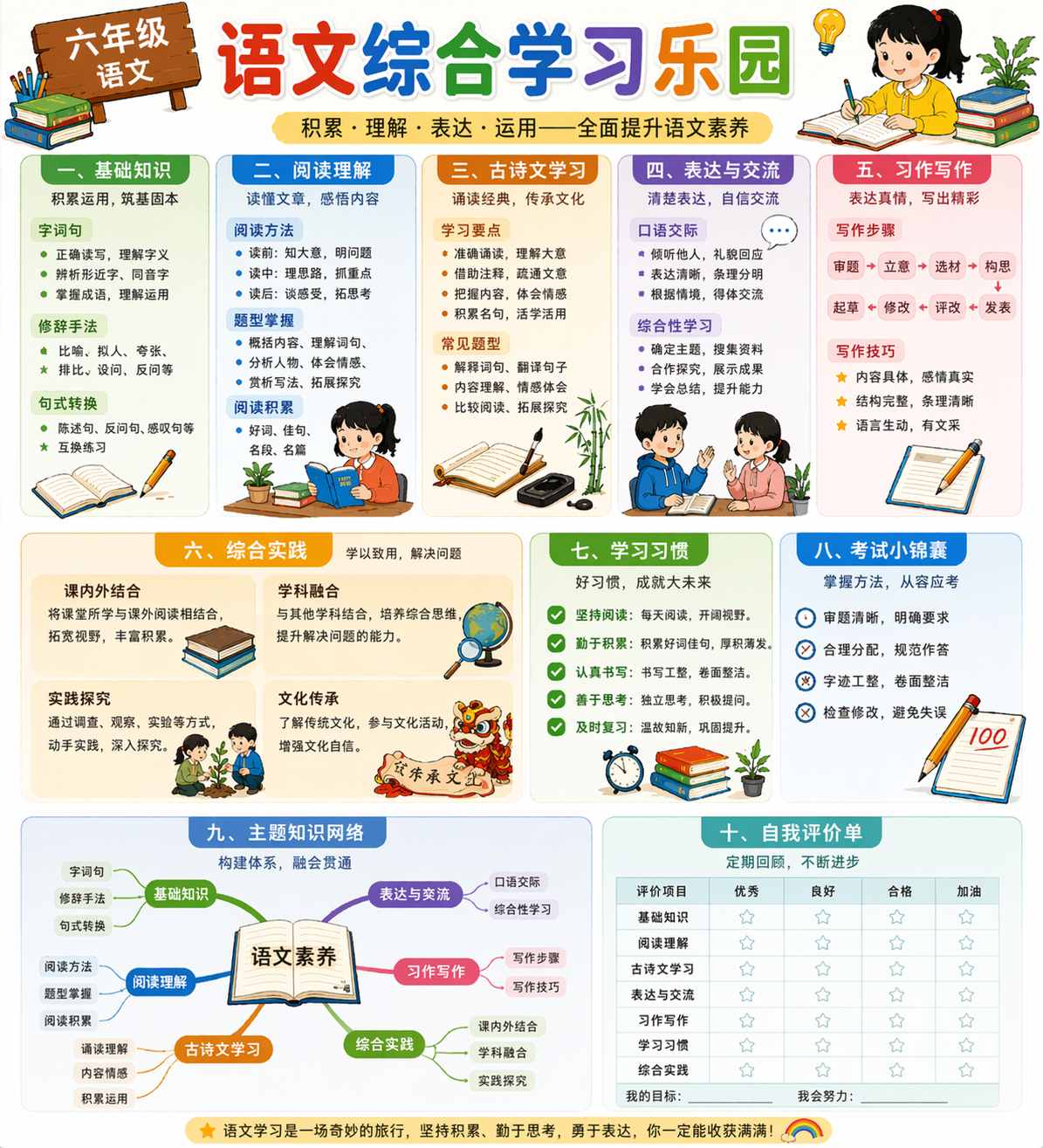 六年级综合能力训练重点是整合知识、综合运用、提高表达。