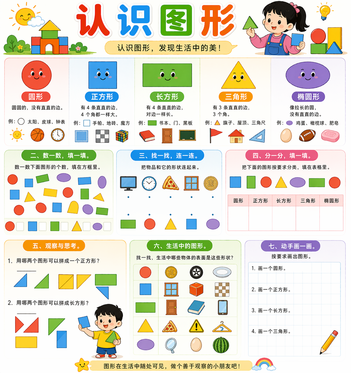 | 正方形 / 长方形 | 正方形四边相等 | 书本是长方形 |