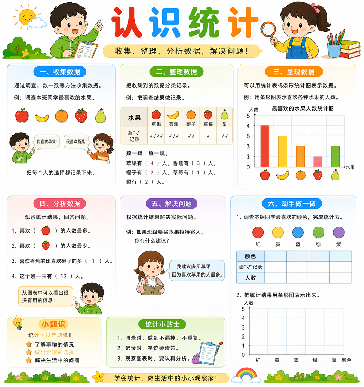 二年级统计学习重点是会记录、会整理、会读图。
