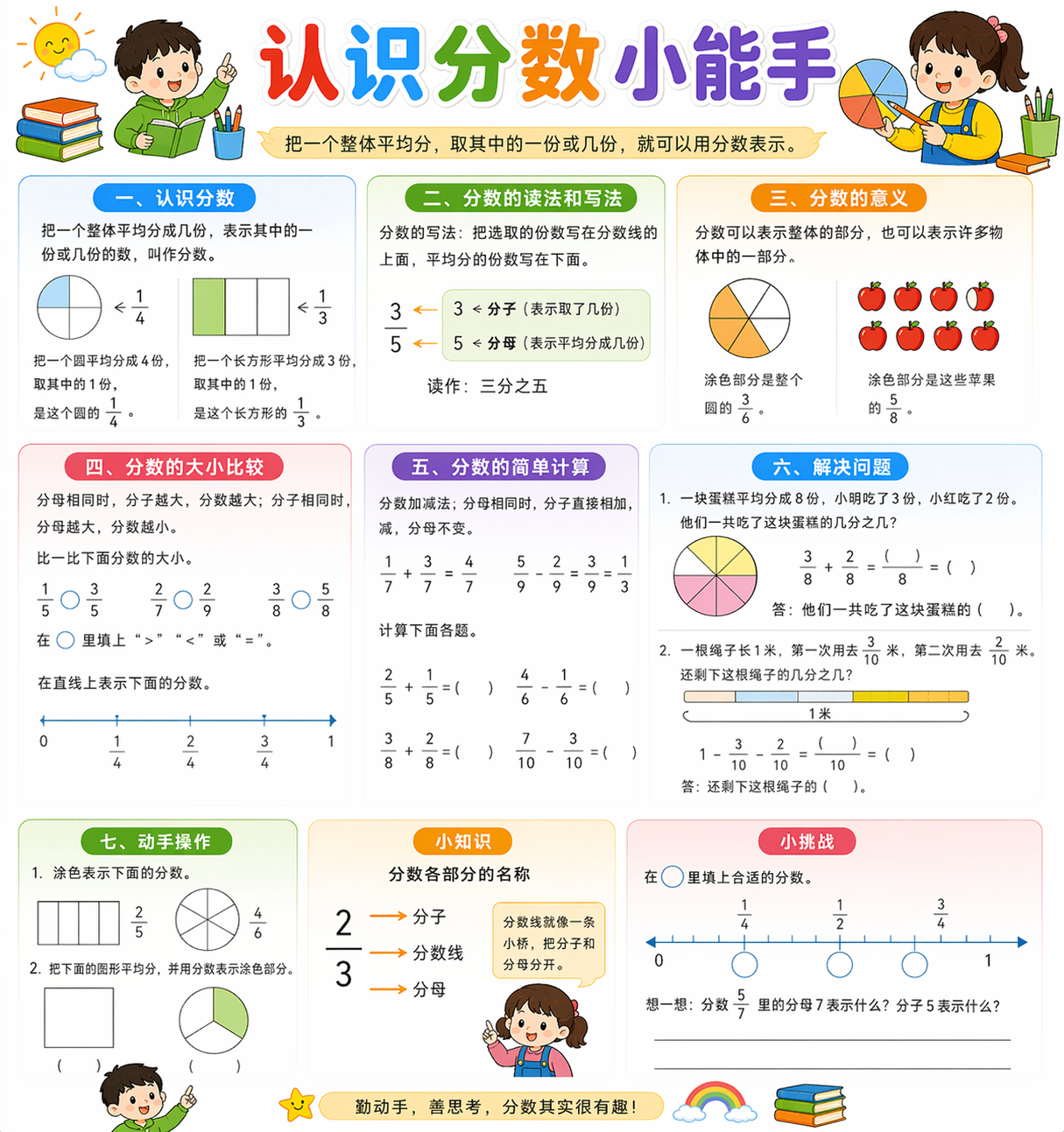 | 1/3 / 1/4 | 分母越大份越小 | 1/3 > 1/4 |