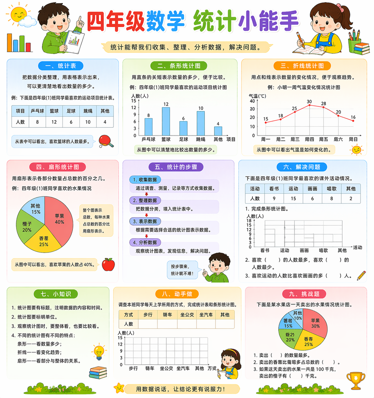 四年级统计学习重点是会整理、会分析、会表达结论。