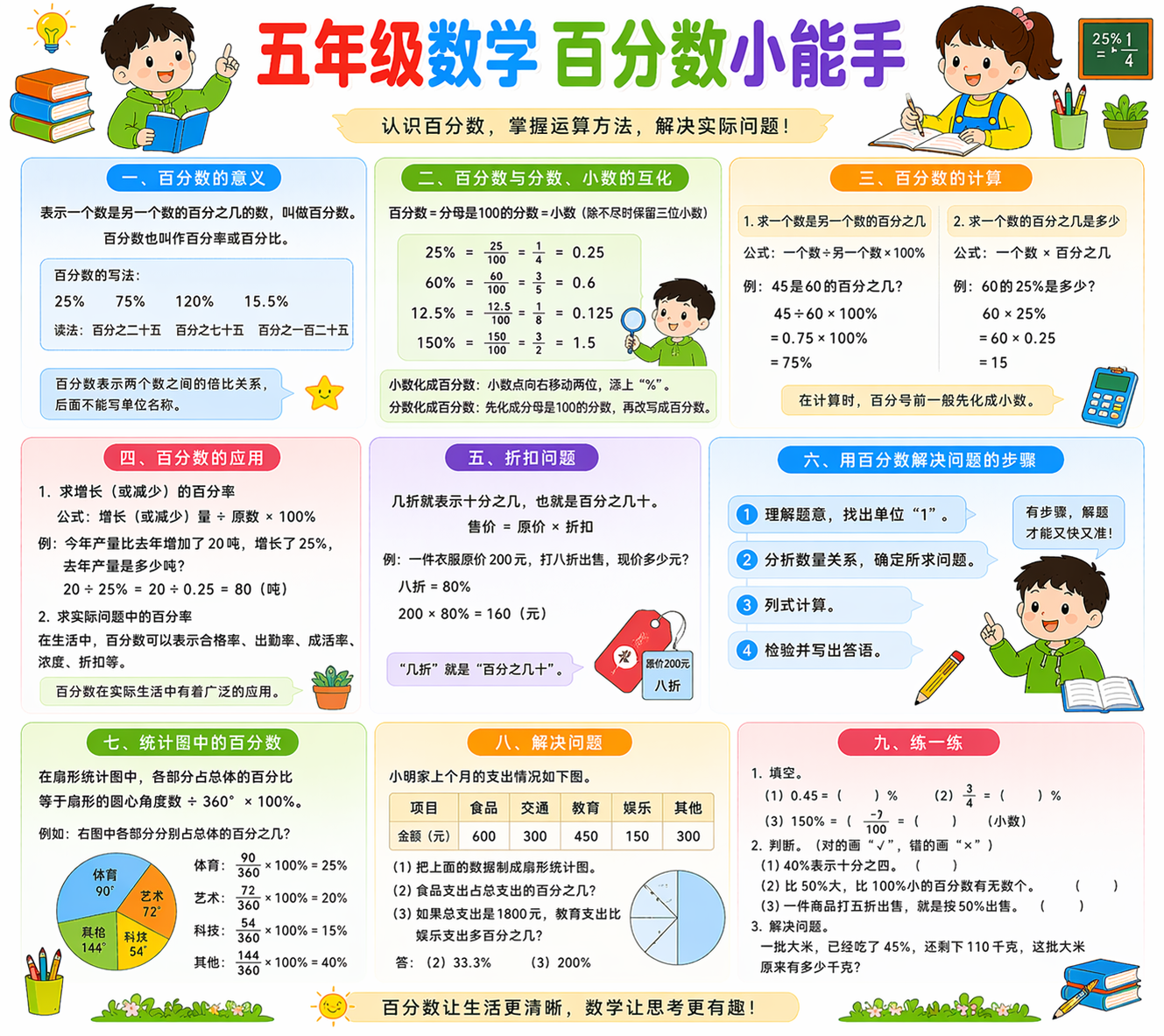 五年级百分数重点是理解含义、会计算、会应用。