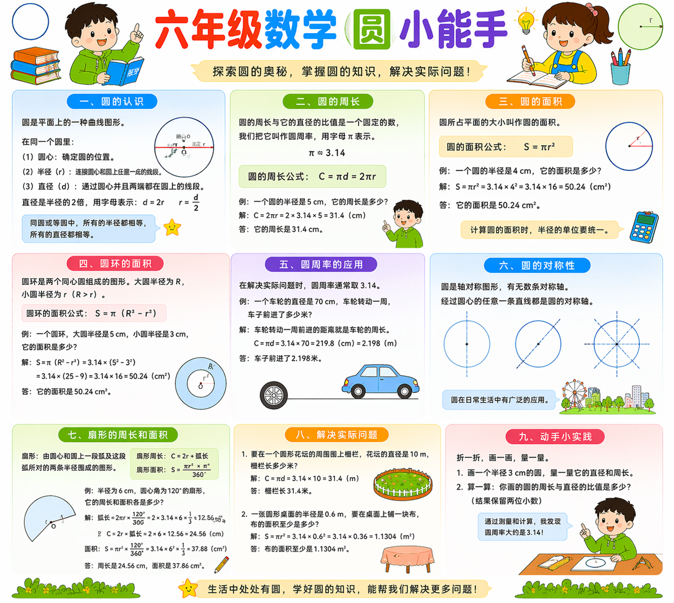 六年级圆重点是认识圆、会计算周长和面积。